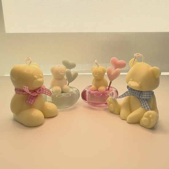 Scent: Premium vanilla essential oils (warm and comforting) Customization Options: Personalize it your way! Select custom colors for the bear cub, balloons, or wax, and choose from a range of premium scents to match any theme or preference.